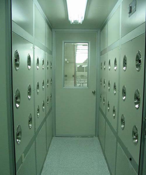 工作原理: 吹淋室內(nèi)空氣主要為循環(huán)使用,空氣從下部予過濾器被風(fēng)機吸入,經(jīng)過高效空氣過濾器后從球型風(fēng)嘴內(nèi)高速噴出,對人體表面的浮塵進行凈化,含有浮塵的空氣再被吸入予過濾器。
